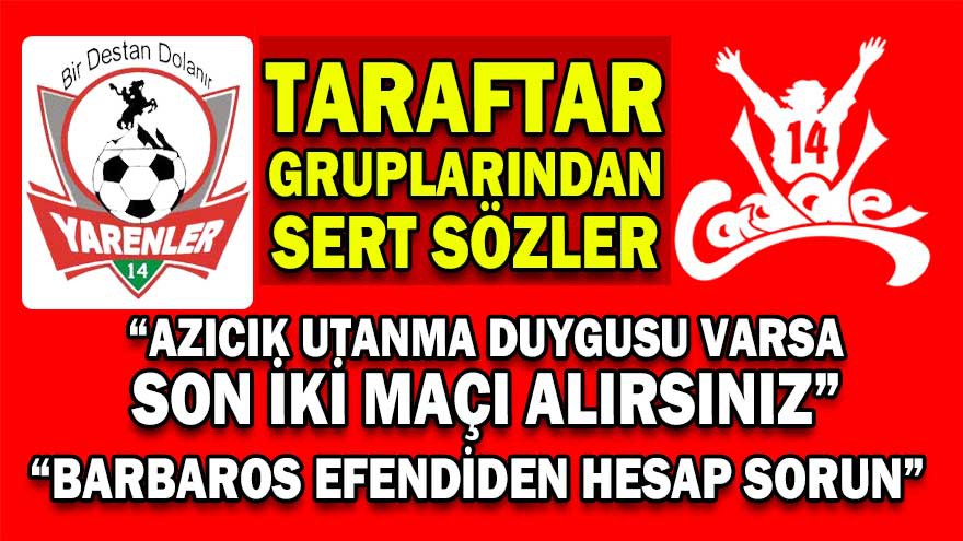 Boluspor yönetiminin de ağır sözlerle eleştirildiği açıklamada, takımın Sportif Direktörü Barbaros Gözneli’den hesap sorulması gerektiğinin altı çizilerek, “Öyle peş peşe 3 galibiyet alınca soyunma odasında galibiyet pozuna girmekle olmaz bu işler. 17-18 tane transfer yaptınız neredeyse hepsi çöp. Takımı Başakşehir’in pilot takımı haline getirdiniz. Sezon başında bu çöpleri bu takıma kakalayan Barbaros efendiden hesap soracağınıza, bu futbolcu müsveddelerine ceza verip, kadro dışı bırakacağınıza sizler galip gelince poz veriyor, takım kaybedince kafanızı kuma gömüyorsunuz. Boluspor kimsenin babasının çiftliği değil. Kimsenin egolarını tatmin etme yeri de değil. Ve Boluspor hiç bir takımın pilot takımı değil. Biran önce kendinize gelin ve bu takıma çeki düzen verin. Unutmayın, bu takım düşerse bu şehir düşer, bu şehir düşerse sizler de düşersiniz!” sözlerine yer verildi.